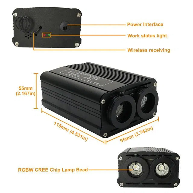 Touch Remote Controller 32W Dual Optical Fiber Connectors LED Light Engine For Car or Star Ceiling Decoration.