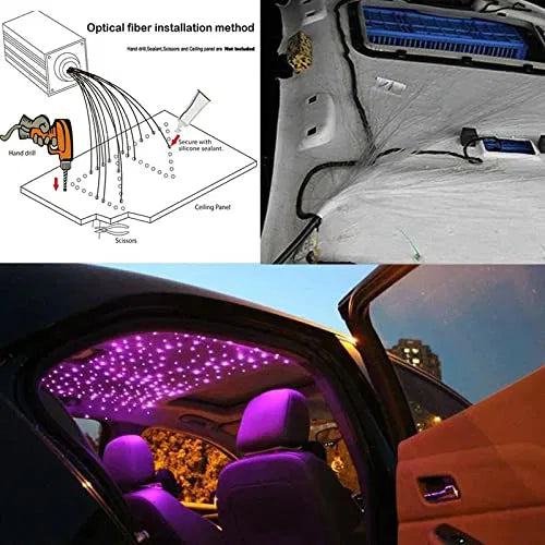 Fiber Optic Light RGB 300pcs Cable Ceiling Car Roof Star Light 2M Remote Control 300pcs App+Remote Control. DC12V, Suitable for car, 21-key multi-function remote control, easy to use. It uses RGBW lamp beads, have pure white, the most suitable for the stars. High brightness, energy saving, long use life. 12W RGB Remote Control LED Fiber optic light Star Ceiling Kit Lights for Car Ceiling Starry Sky Effect.