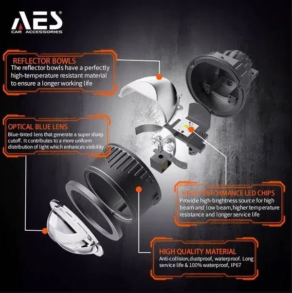 AES FX Bi-Led Tri color Laser 3 INCH Fog Lamp High Evolutionary (Lo/Hi Power- 43w/67w)