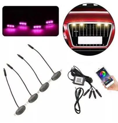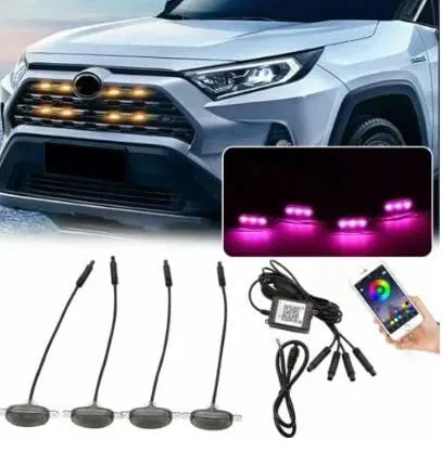 4PCS Smoked Front Grille LED Lights RGB Style Smoked Lens LED Front Grille Running Lights for Universal Fit