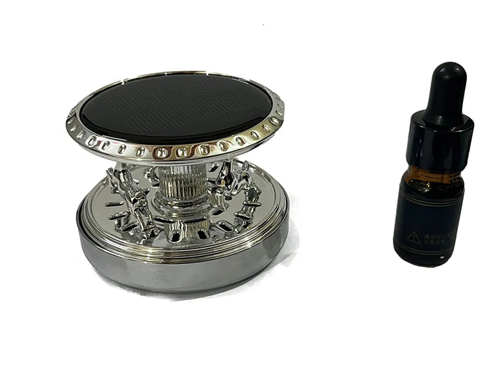 Car Aroma Diffuser Air Freshener Perfume Solar Power Dashboard Merry Go Dear Decoration With Perfume(Silver).