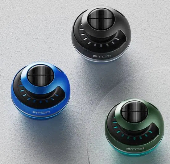 Car Aroma Diffuser Round Atom Air Freshener Perfume Solar Power Dashboard Decoration With Perfume (Atom Sytle, Blue). Our essential oil fragrance is an oil based fragrance which is proved to be the best at removing odour from your car. This product is made of alloy which doesn't break easily.