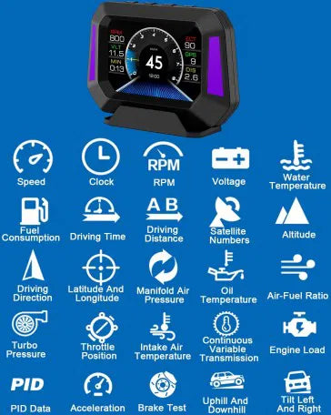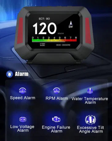- The tachometer's analog display has a pointer that moves to indicate RPM, so you can visually identify the engine RPM value. It has multiple windows so you can switch to your preferred screen at will. The digital speed readout is easy to see at a glance, so you can concentrate on driving without looking down at the dashboard, avoiding distractions and even accidents. It shows speed, altitude, water temperature, and voltage.