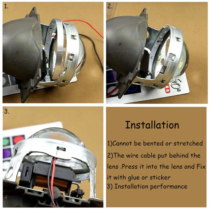12-SMD RGB LED Demon Eye Halo Ring Kit Bluetooth APP Wireless Remote Control 2.8" 3.0" Retrofit Projector Lens for Car and Bike.