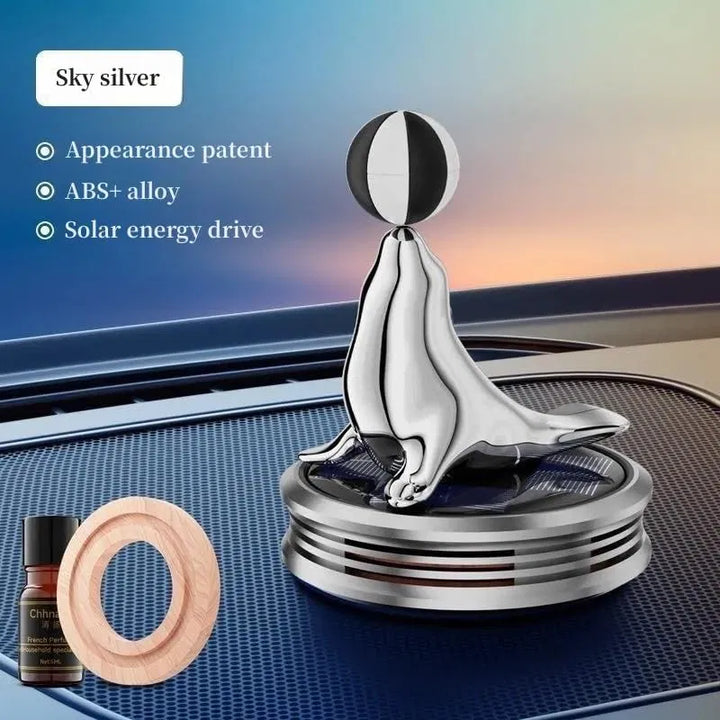 Car Solar Aromatherapy Rotating Sea Dolphin 360 degree Suspended Automatic Car Aromatherapy Perfume (Silver)