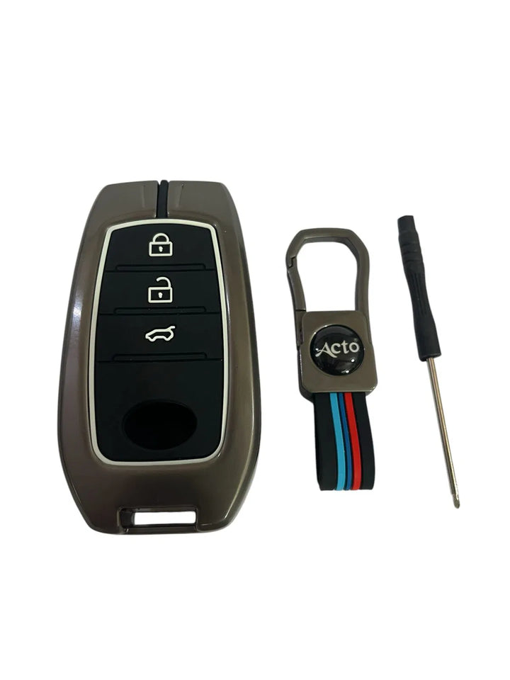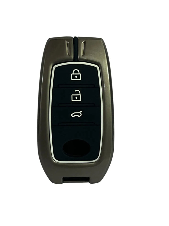 Metal Car Key Case Cover Compatible with Innova Hycross, Fortuner, Hilux, Innova Crysta, Fortuner Legender,Land Cruiser,Suzuki Invicto 2 Button Smart Key Cover Premium Metal Alloy Keycase. This Zinc alloy key covers offer durability and style protecting your keys while adding a touch of elegance to your key. 360 degree protection From any accidental damage and all weather protection. The inner silicone key from accidental drops and impacts, ensuring it's longevity and functionaly. Resistance free signal doesn't affect any frequency of your remote key.