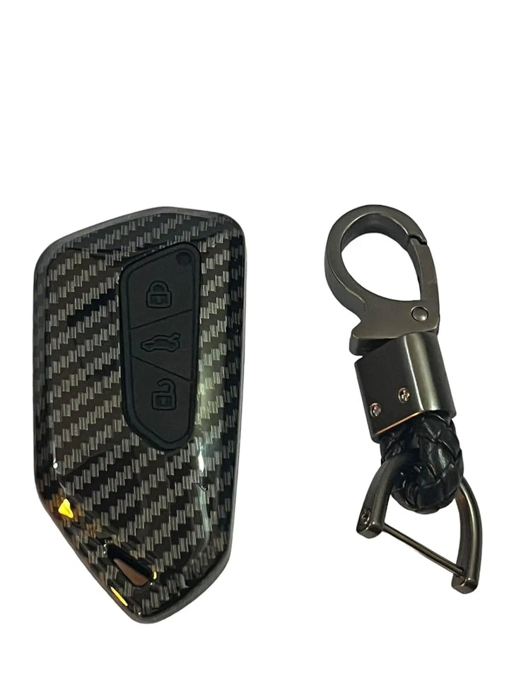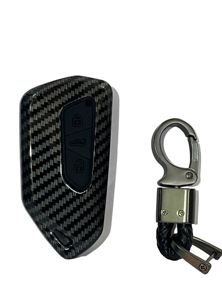 Carbon Fiber ABS Car Key Cover Compatible with Skoda Octavia (Key Chain Included)