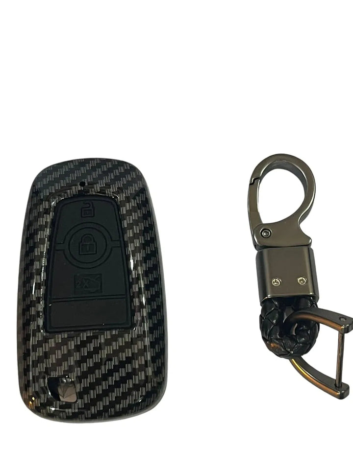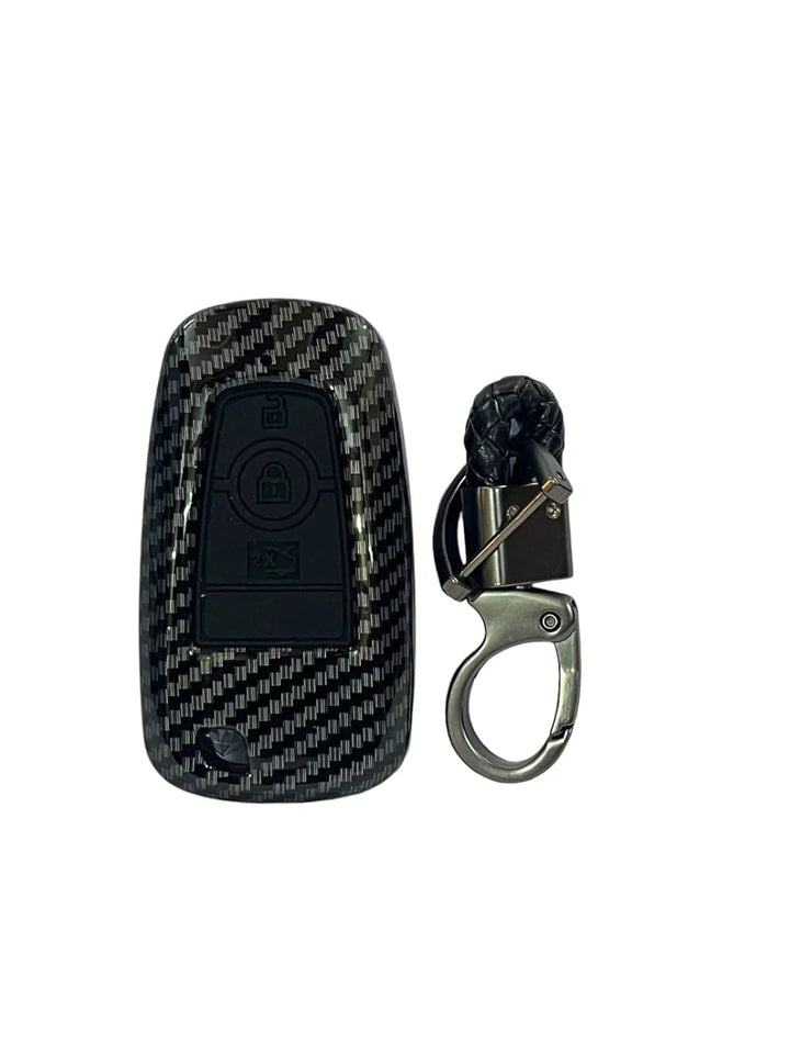 Carbon Fiber ABS Car Key Cover Compatible with Endeavour, Figo, Aspire (Key Chain Included)