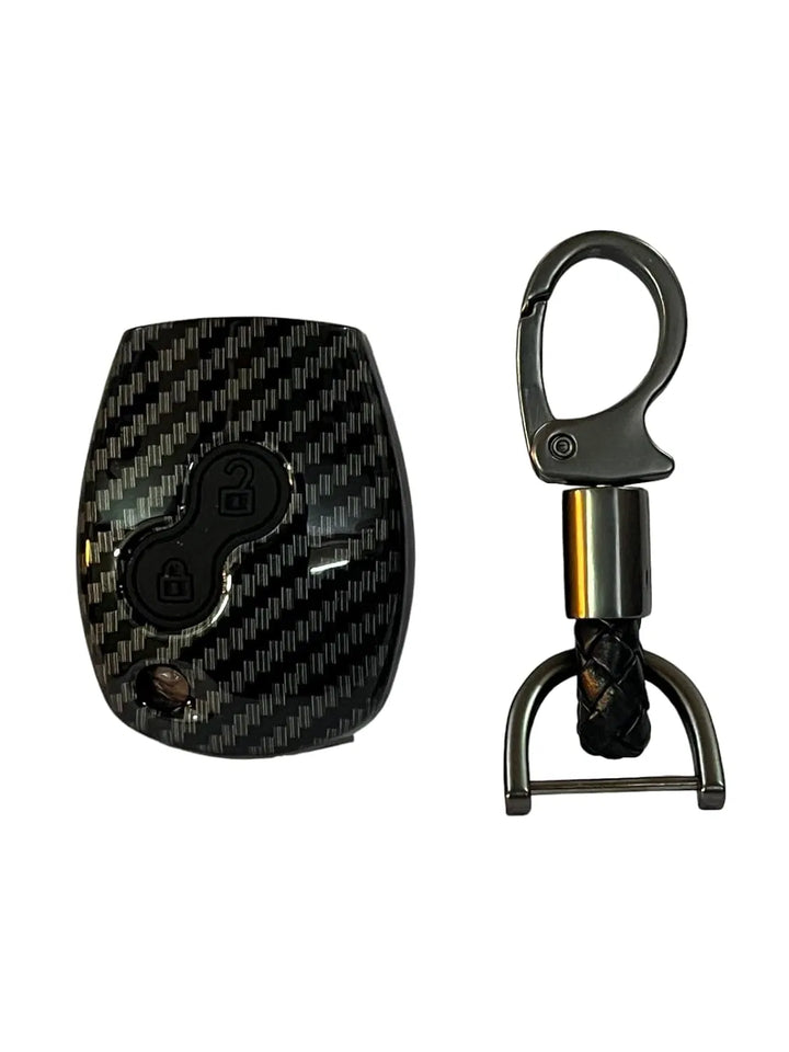 Carbon Fiber ABS Car Key Cover Compatible with Duster,Logan,Verito,Lodgy & Terrano 2 Button Remote Key (Key Chain Included)