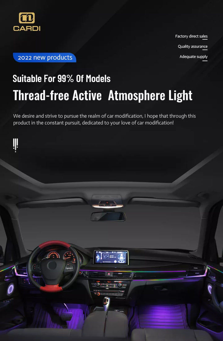 Thread- Free Active Atmosphere Light. We desire and strive to pursue the realm of car modifiaction, I hope that through this product in the constant Pursuit, dedicated to your love of car modification.