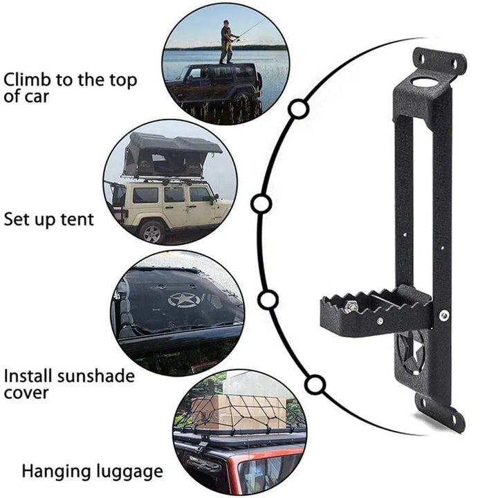 Door hinge step like a mini ladder, help you to put or take things from car roof.