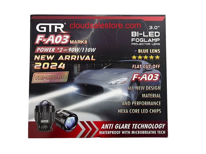 GTR F- A03 3inch BI-LED Tri- Color Fog Lamp Projector Lens 90/110watt High Low Beam For Car.
