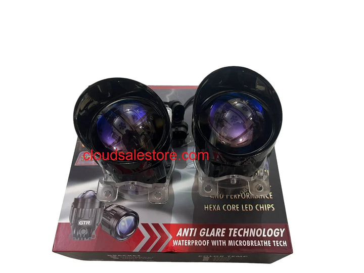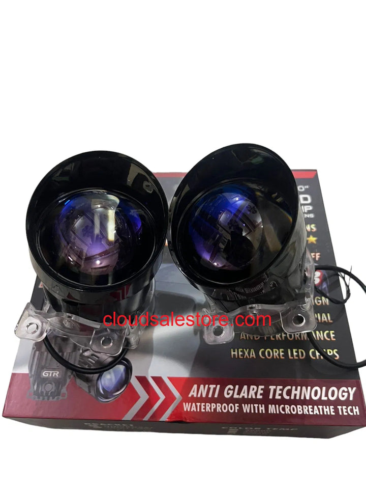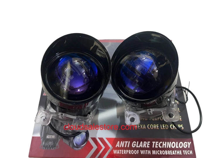 GTR F- A03 3inch BI-LED Tri- Color Fog Lamp Projector Lens 90/110watt High & Low Beam Universal For Car (Blue Lens)