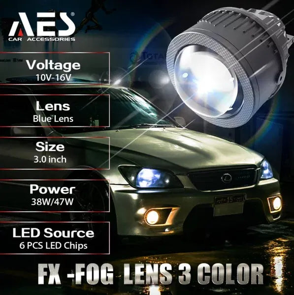 AES FX Bi- Led 3 Inch Blue glass 3 Colors (Lo/Hi Power-38/50w)