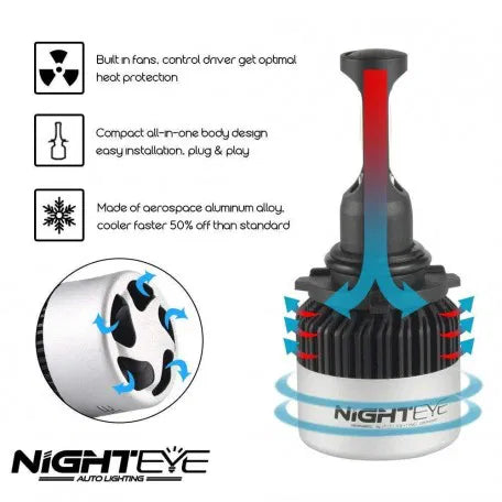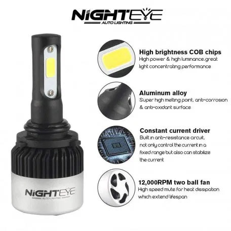 (H27/880/881) NIGHTEYE-A315 LED Headlight Bulbs 2Pcs 50W 8000LM 6500K All-in-one Conversion Kit w/CSP Chips Bulb Single Beam Bulbs Super Bright LED Car light
