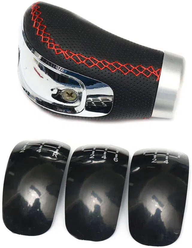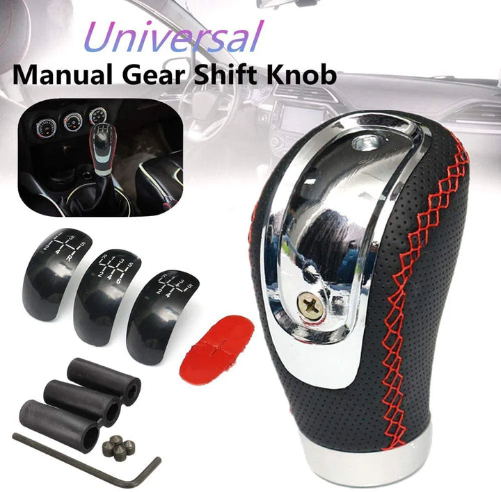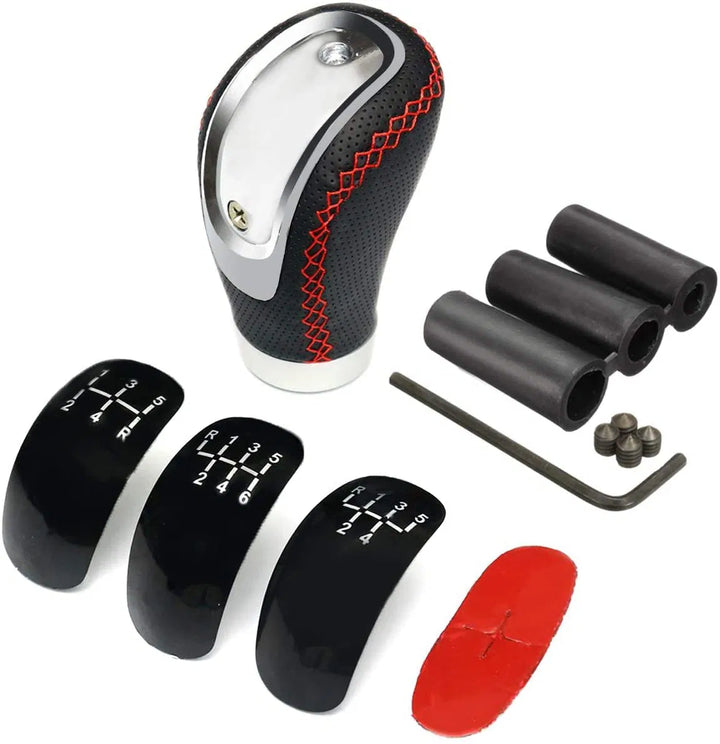 Car Gear Shift Knob 5 6 Speed Black PU Leather Manual Shifter Lever Handle Stick with 3 Cap Replacement for 8mm 10mm 12mm Port Gear Lever.