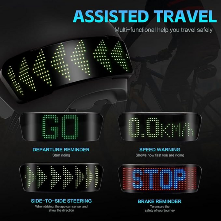 LED Smart Cycling, Motorcycle Helmet Light with Turn-Signals Speedometer and Programmable APP
