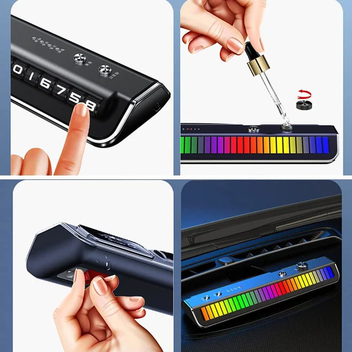 Car Air Fragrance with Atmosphere Light Voice-Activated Music Rhythm Ambient Light with LED with Parking Number