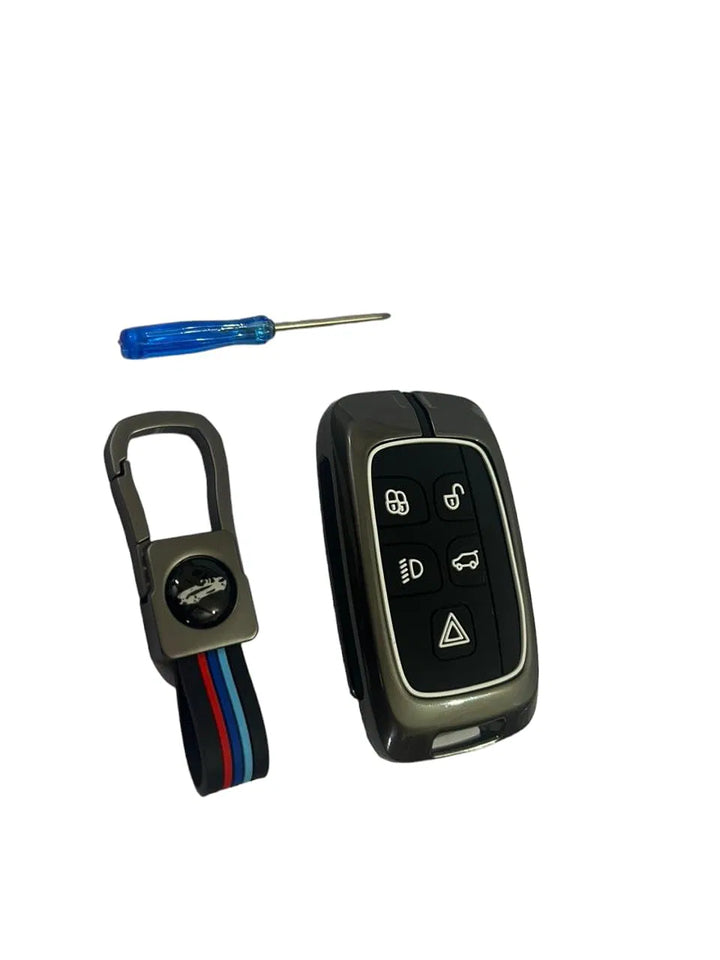 Metal Car Key Case Cover Compatible With L-and R-over and J-aguar Smart Key Premium Metal Alloy Keycase with Holder & Rope Chain.