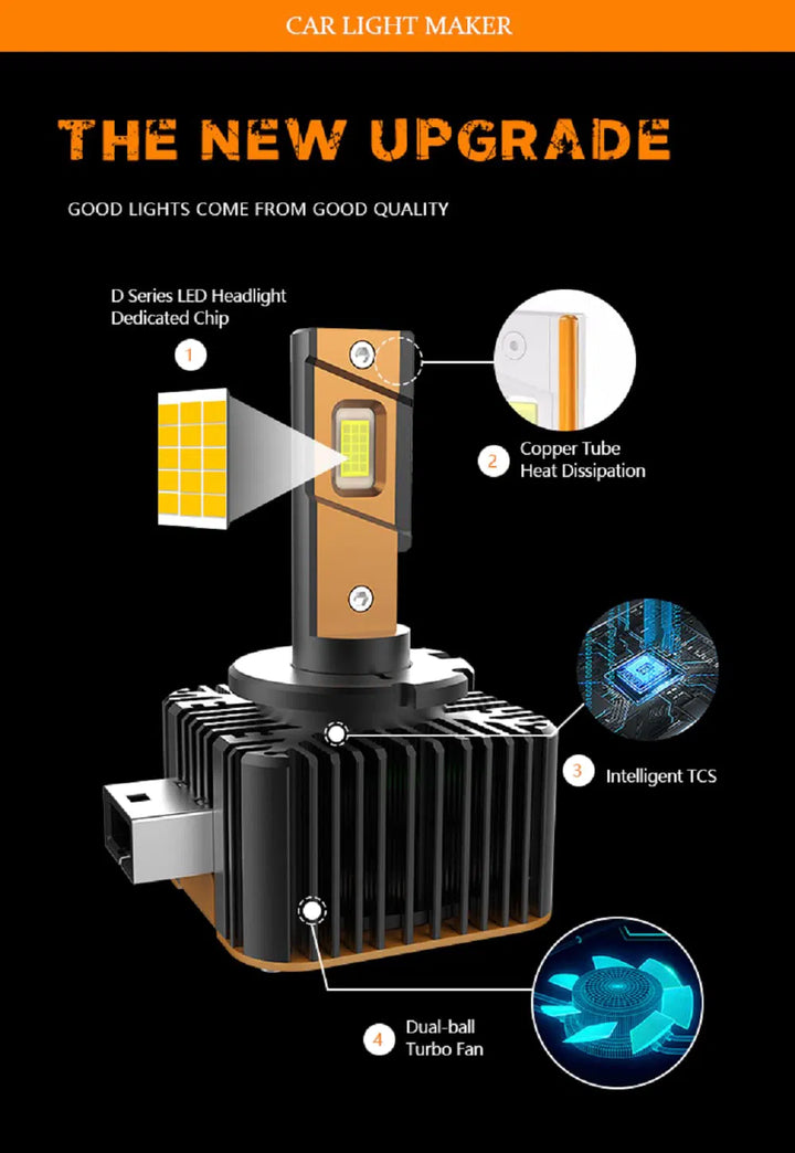 Tac-Pro D3S LED Headlight Bulbs Conversion Kit 6500K Xenon White 75W/pair 10,000LM/Pair Type (D3S).
