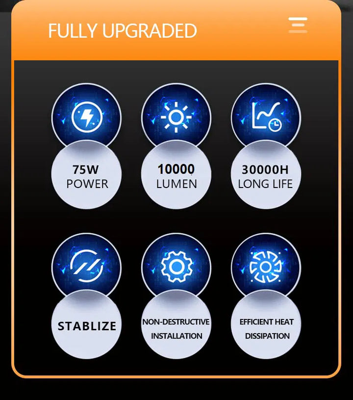 Super Bright Led Car Headlight Bulbs 75W High Power And 10000lm/Pair .Brightness Up To 200%,Without The Glare Scatterting Light And Spotty Dark Spot.
