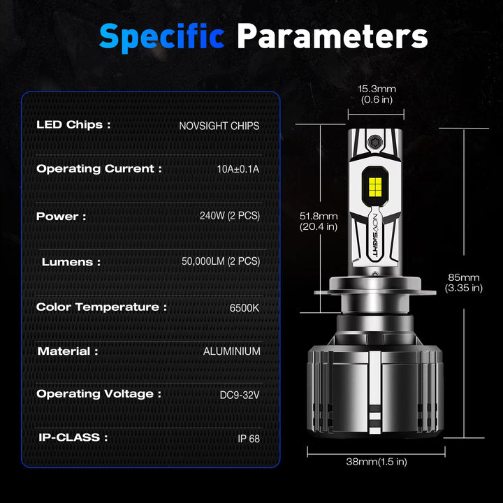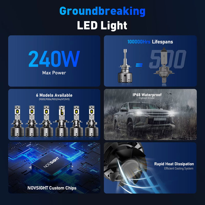 Novsight T1 High Power 240w 50000lm Led 6500K Light Car Bulb H11 Led Headlights with 18 month warranty