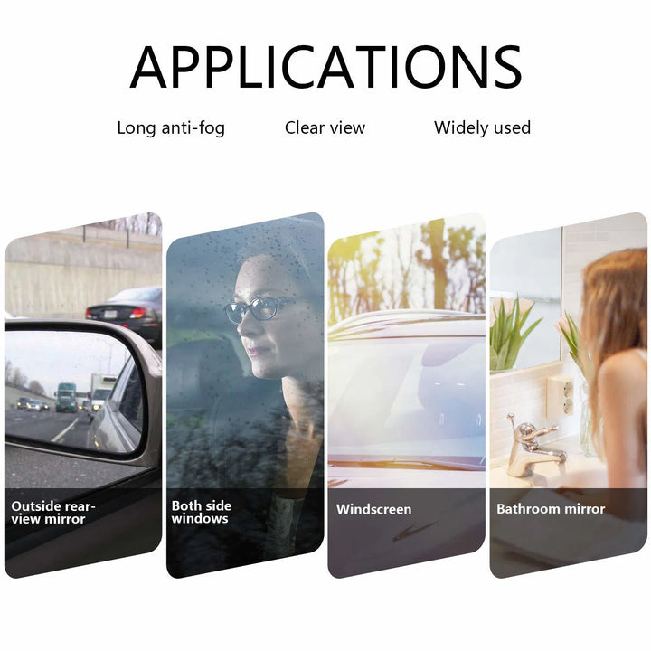 The car mirror film is suitable for all standard size car rearview mirrors, such as cars, buses, off-road vehicles, taxis, trucks, trailers, motors, motorcycles, etc. It is also suitable for bathrooms.