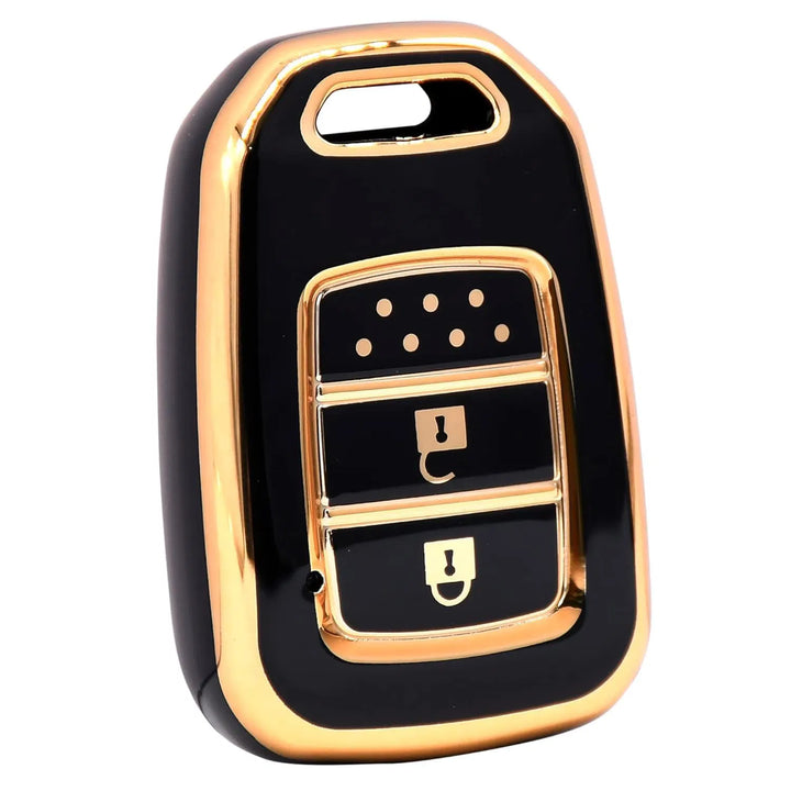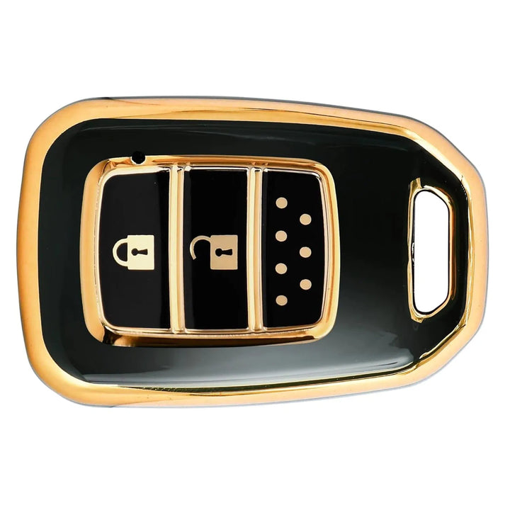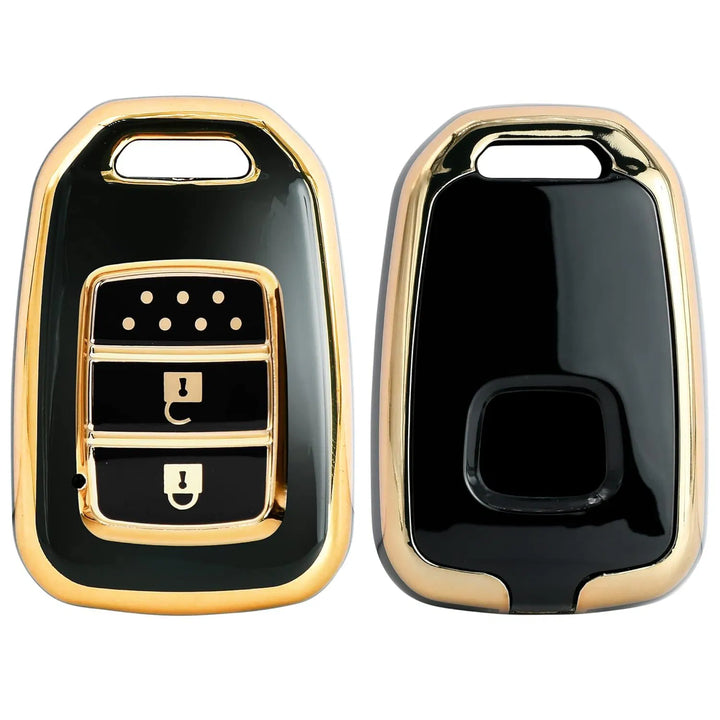 TPU Car Key Cover Compatible with Hon-da Jazz,City,WRV,BRV (2014 Onwards) 2Button Smart Key (Gold/Black)