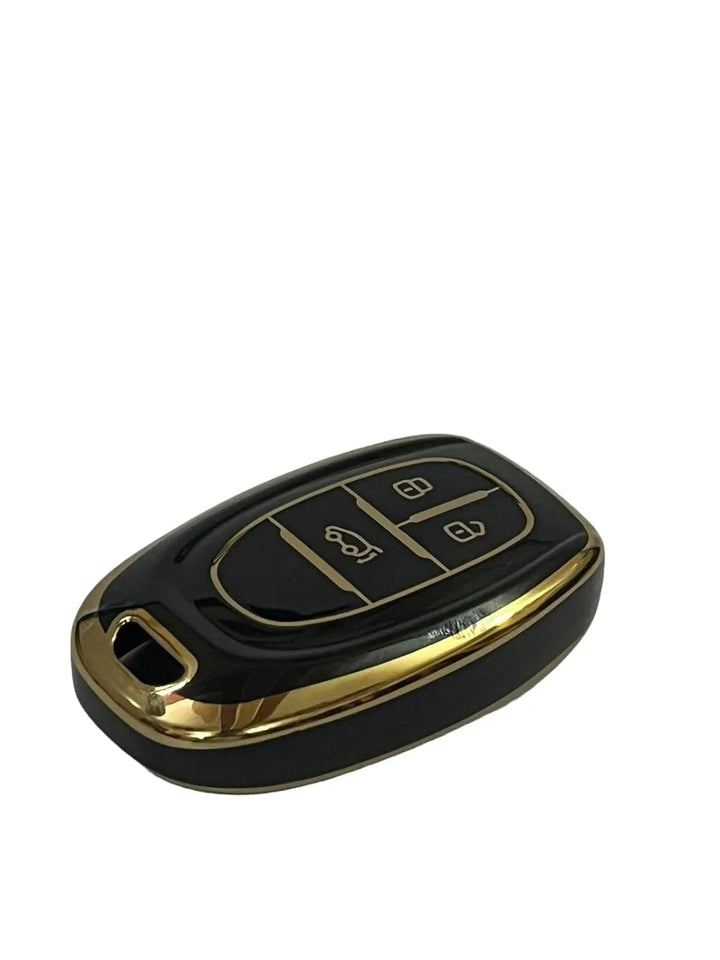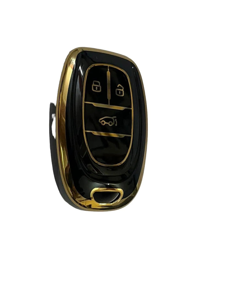 TPU Car Key Cover Fit for MG Gloster 3 Button Smart Key (Blk/Gold).